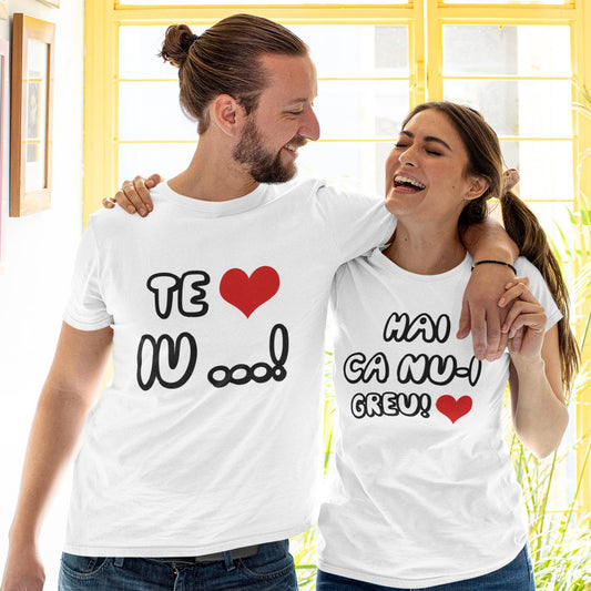 Set Tricouri Cuplu Amuzante "Te Iu... Hai că nu-i greu!"